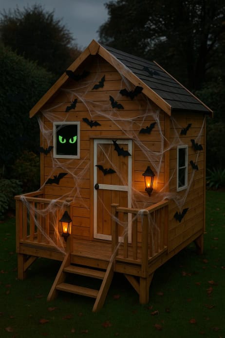 Every playhouse can join the Halloween fun. Pick a few ideas from our list that suit the space, and let the kids lead the chaos. Lights flicker, shadows stretch, and every nook turns into a tiny haunt.