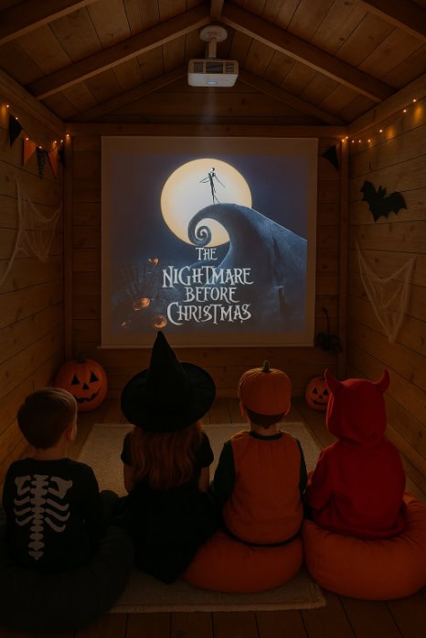 And if it’s not too cold, set up the playhouse into the tiniest cinema this side of Transylvania. Pull the curtains shut, hand out a few blankets, and let the kids pile in with popcorn like mini movie monsters.