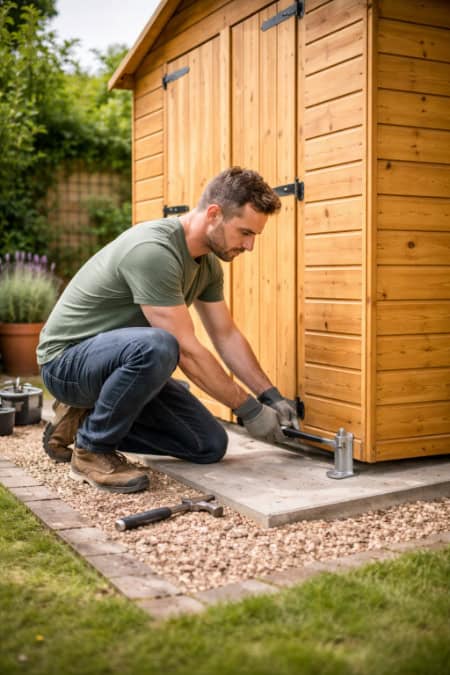 Anchor your shed by fixing it to a solid base with ground anchors, bolts, or directly onto a concrete slab. A concrete pad, level gravel, or timber frame works best for the foundation. Once the base is ready, attaching the shed is pretty straightforward: