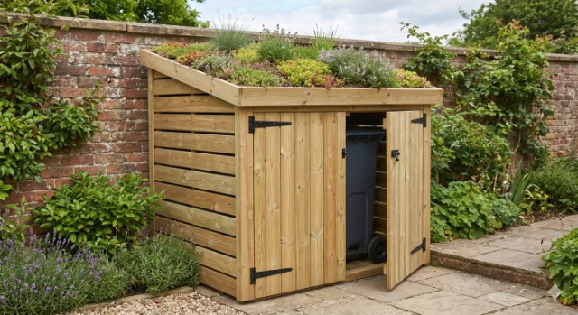 Like low-profile sheds or sentry boxes, bin stores come with front doors and hinged lids for easy access. If you opt for a pent roof-style, that can be turned into a “living roof” with a lightweight sedum. It takes the edge off the look and helps it fit in better outdoors.